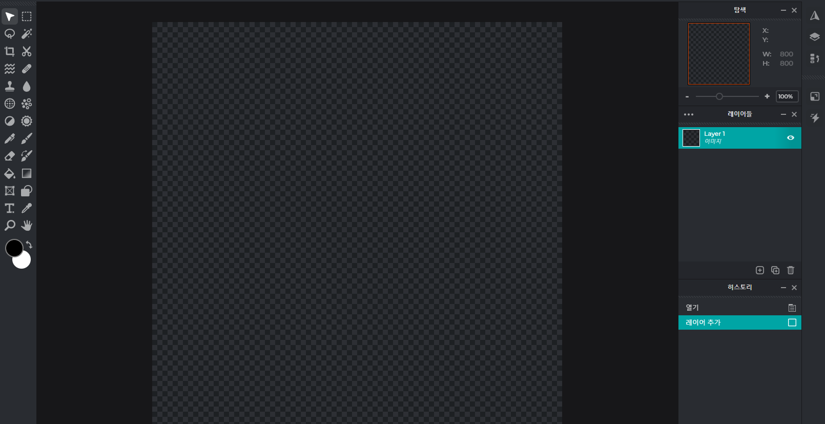 Pixlr X는 간단한 툴로 구성되어 있고, Pixlr E는 조금 더 포토샵과 같은 다양한 기능을 사용할 수 있습니다.